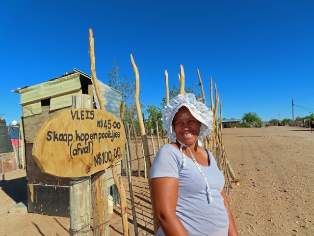 It was the sign ‘Ons doen alles’ (We do everything) on Mathias Fillemon aka Smit’s fence that caught our eye. And Mathias lives up to the words, selling wood and ice from his neat yard – which has areas partitioned for dogs, chickens and mechanical repairs – and offering any and every service you may require.