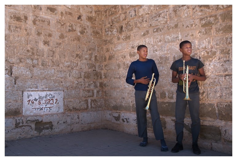 While we waited for a friend to return from her day at work in Mariental, we explored the neighbourhood, stopping at the Ebenezer church where young Marius Cloete and Isaack Mchenry were practising on their trumpets for the church choir.