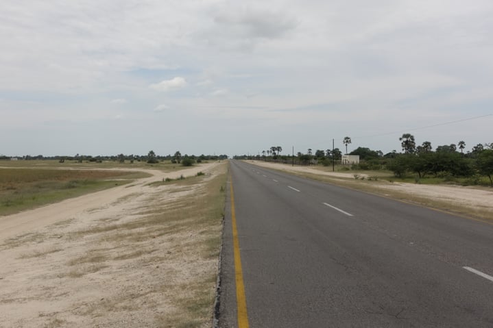 When I drove along the stretch from Ondangwa to Okahao in 1992, not long after independence, I took this photo of the two-laned cement road. Thirty years later I took another photo of the good tarred road it had become in the intervening years.