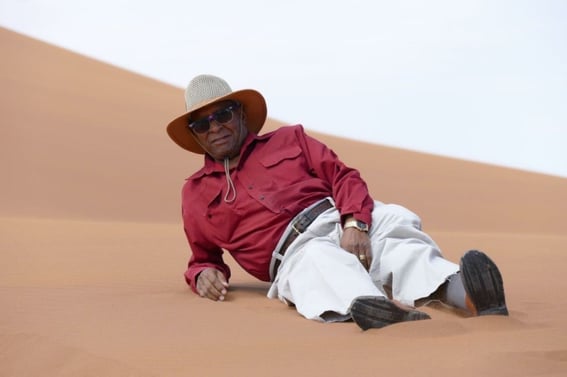 I only had the good fortune of meeting Prof Kerina in the last decade of his life and was amazed at the vitality of the man in his 80s. Over the years, he introduced me to his world, sharing his humorous childhood stories of hiding behind his mother’s voluminous Herero skirts – and hefty bulk, and the stories of the 50s, 60s and 70s. I learned that although he had been around the world and back, and was instrumental in suggesting a name for the independent country at the UN, he had never been to the Namib. (He had suggested that the country be known as the Republic of Namib and that the nationalism be called Namibianism. It was a name that evolved into Namibia and was adopted by the nations of the world.) So, my first journey with him was to the Namib and I have memories of him sitting comfortably in the desert, letting the burnished sand run through his fingers.
