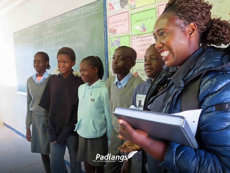 It was our last day in the Zambezi Region and we joined Gondwana’s Zambezi Mubala Lodge manager, Raulinda Nakanyala Kapapero, to visit the nearby Sifuha primary school. Here, she had identified several children to introduce to the world of tourism as part of her Go4Gold leadership programme. The schoolyard was neatly swept and the classrooms freshly painted with bright yellow sunshiny doorways.